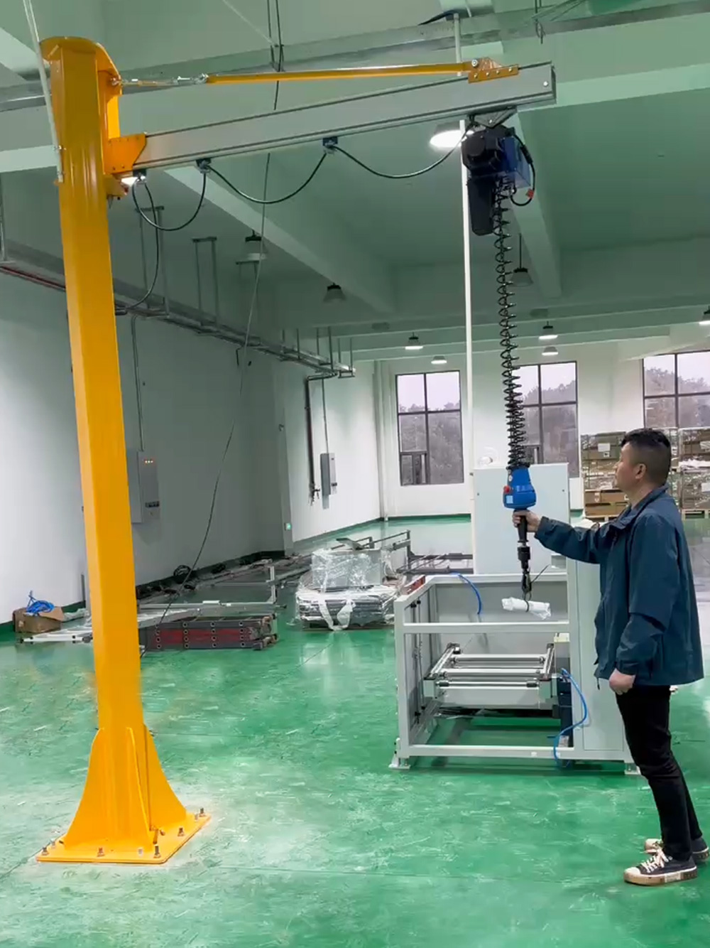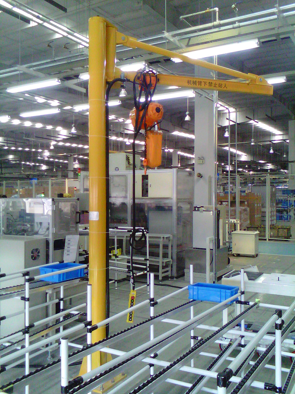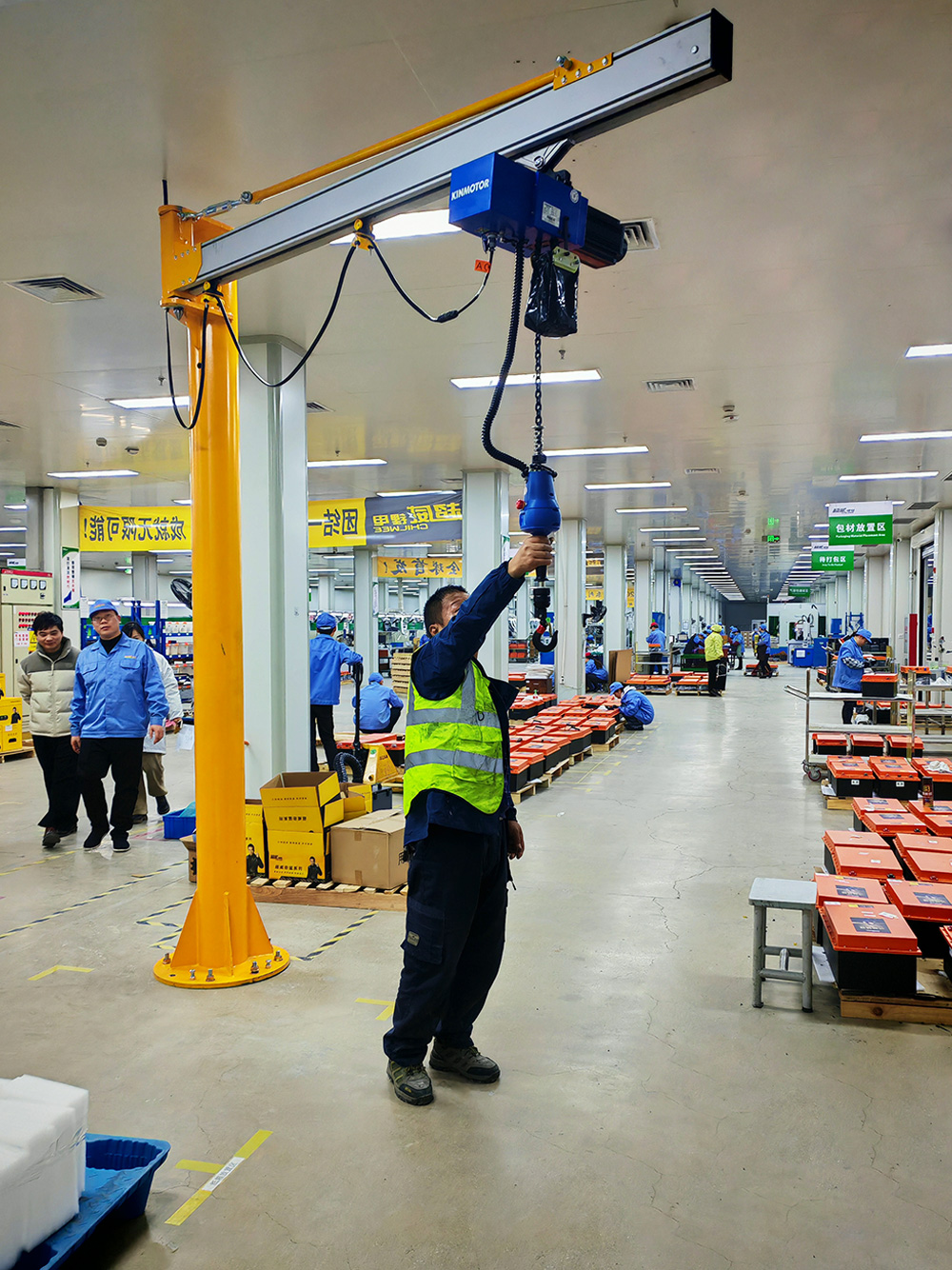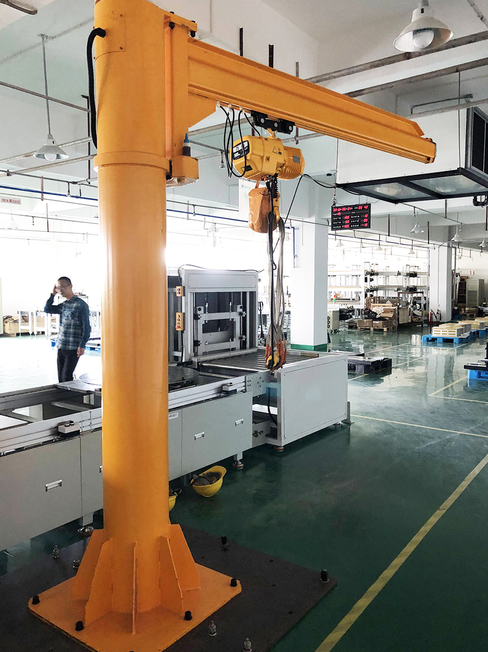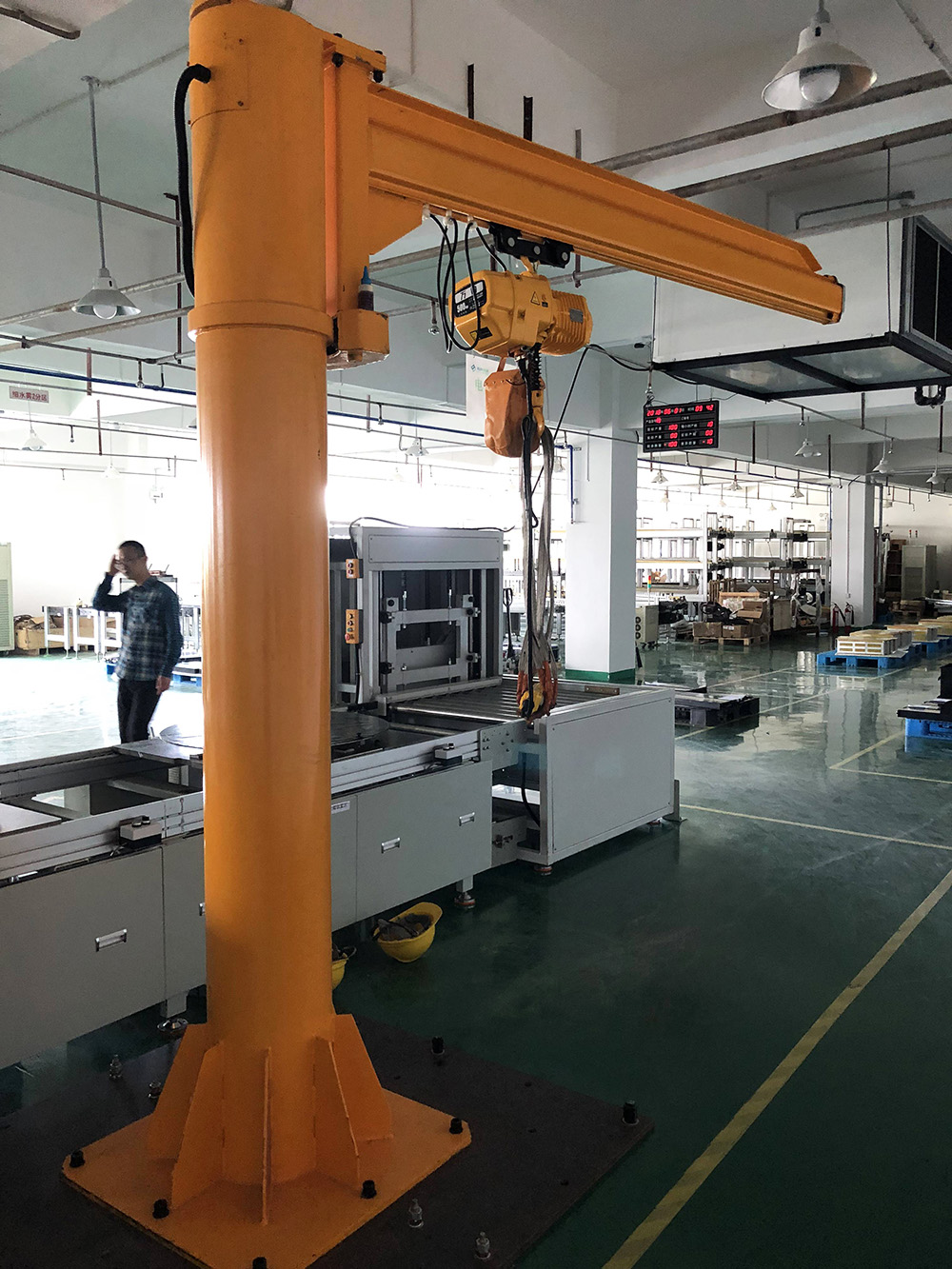 Jib cranes come in a wide range of specifications and complete varieties, such as column-fixed type, wallmounted crane, double jib, telescopic arm and other forms. Lifting equipment also offers various styles for selection, including electric hoist, low-altitude hoist, pneumatic hoist, intelligent hoist, pneumatic balance hoist, etc. The control mode can also use a wireless remote control; the movement speed can be adjusted by frequency conversion according to requirements; special specification requirements can be customized.