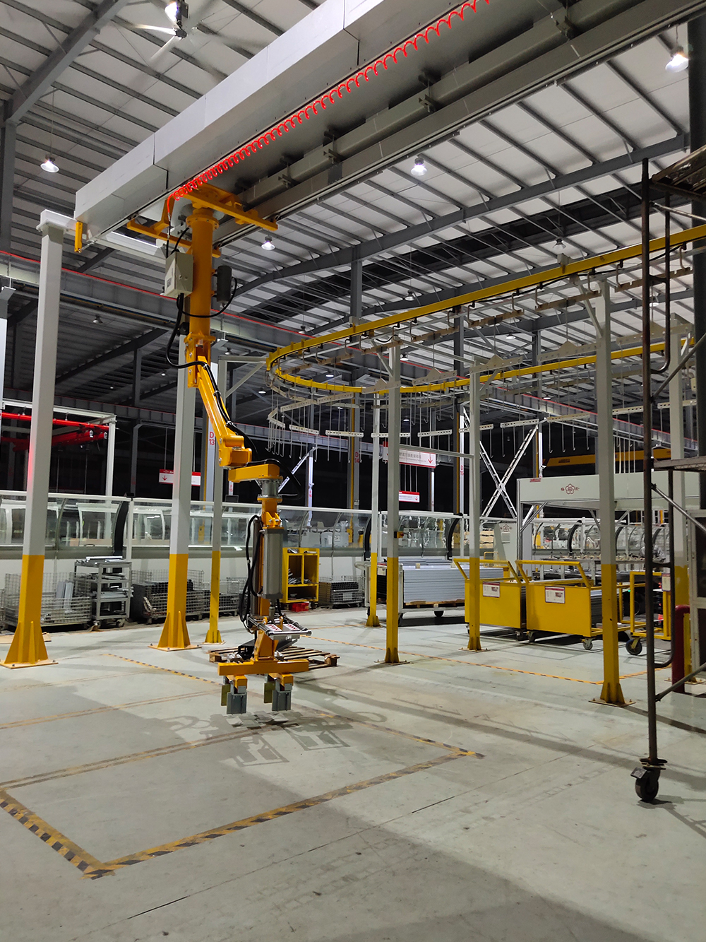 轨道悬挂型适用于大的空间需求,轨道可以根据现场情况借助于现场厂房钢结构,也可以根据搬运空间需求重新定制钢结构悬挂轨道,也可以根据现场条件要求及搬运负载要求更换形式:KBK钢轨、铝合金轨道等。可适用于不同的现场要求。机械手的相关参数和气控系统根据现场搬运需求做调整更改,以便达到使用最优化。